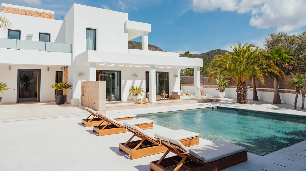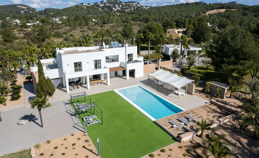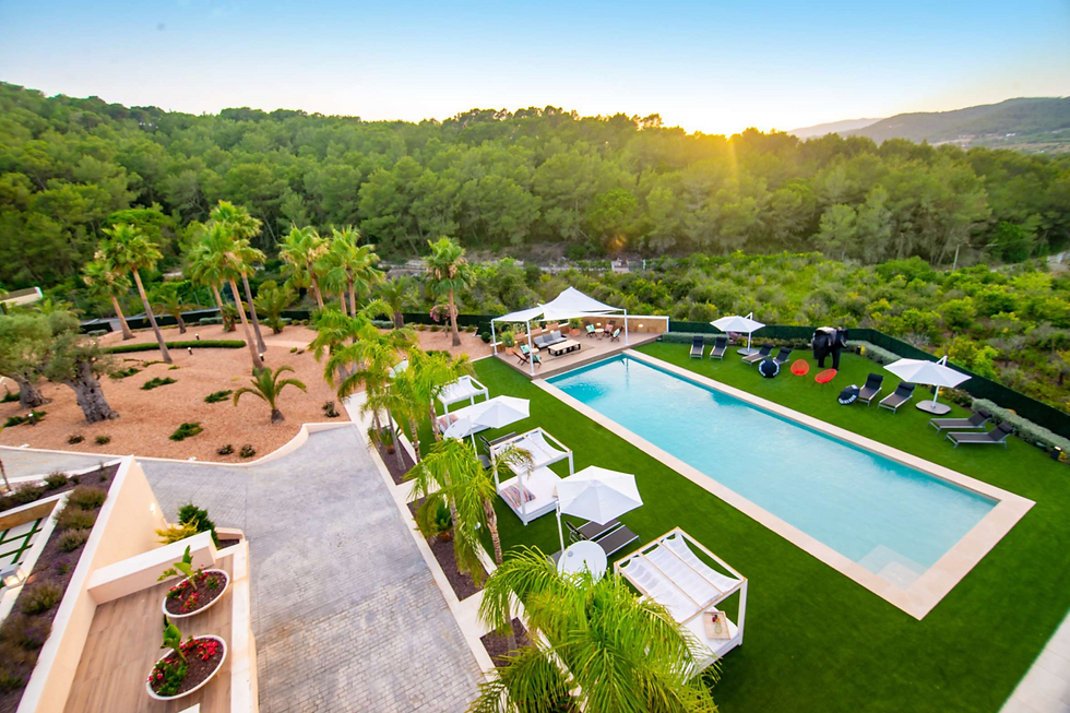 ViIIa Can Sinatra is located in a residential and quiet area close to Jesus village, perfectly close situated to the center of Ibiza town and a short drive to the beautiful Talamanca beach. The villa is surrounded by 17000 square meters with swimming pool, guest house, BBQ, gym and mini Club among others.